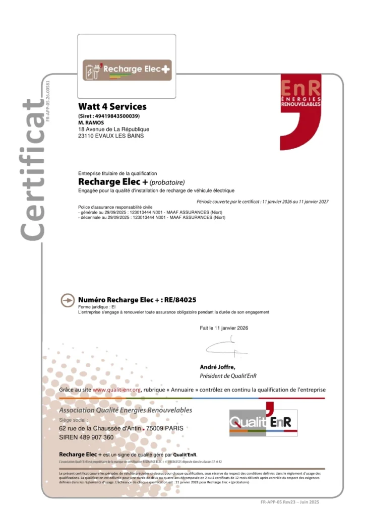 - Entreprise certifié Quali’ENR et Rechage Elec +