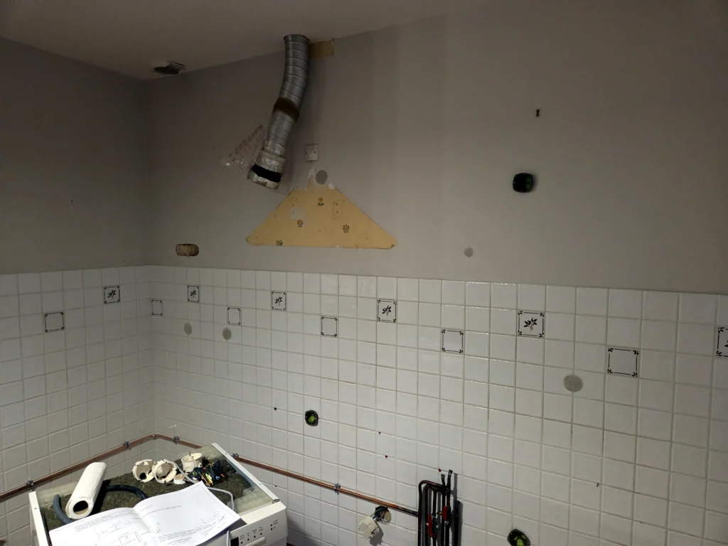Le camion est chargé, c’est parti ! Depuis novembre, je suis pleinement opérationnel. Si vous croisez un beau camion d’occasion (mais rutilant !) dans le secteur, c’est probablement moi. Les premiers chantiers se sont enchaînés, commençant par du dépannage sur des programmations de radiateurs. Mais c’est un chantier de rénovation de cuisine qui a marqué ce début d’activité.